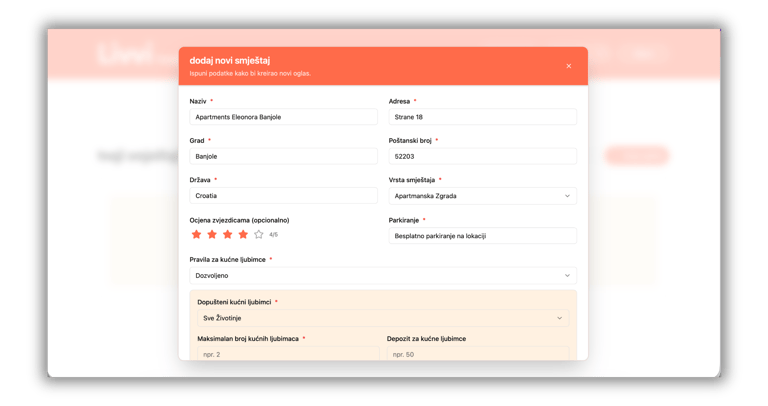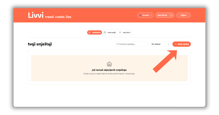 3. Kako dodati svoj prvi smještaj na Livvi platformi