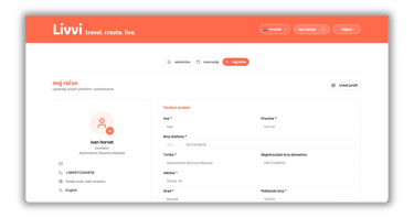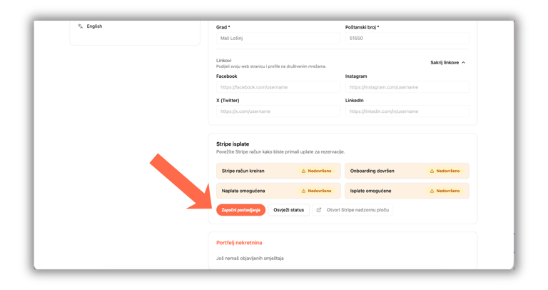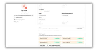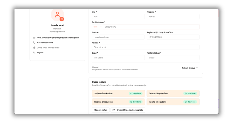 Vodič za uređivanje profila i povezivanje Stripe računa kako biste mogli primati uplate za rezervacije putem Livvi platforme.
