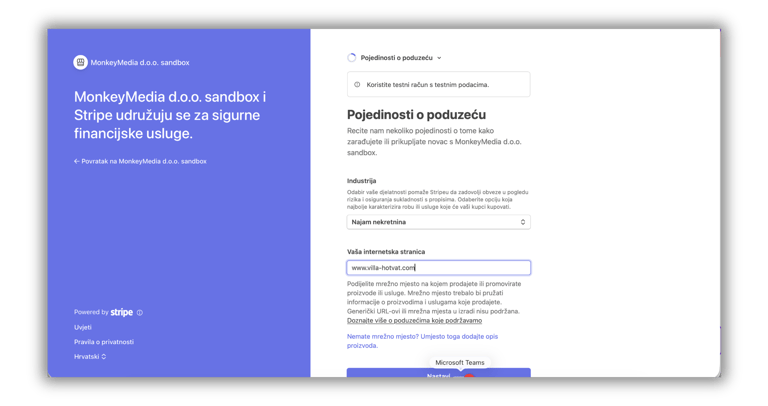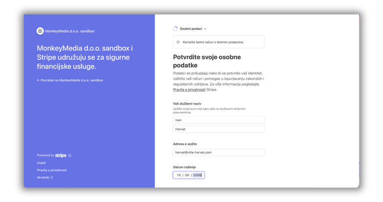 Bit ćete preusmjereni na sigurnu Stripe stranicu.